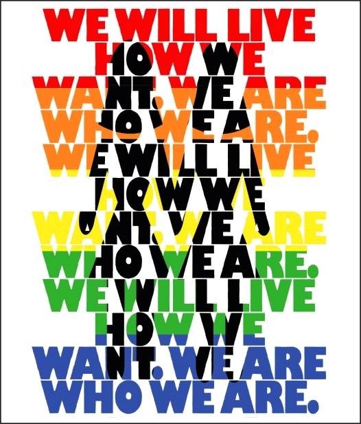 My friend and her family decided to try an experiment. They bought the most beautiful gay rights poster they could find, put it in a nice frame, and hung it at the top of the stairs, hoping the boy might understand that things had changed.
